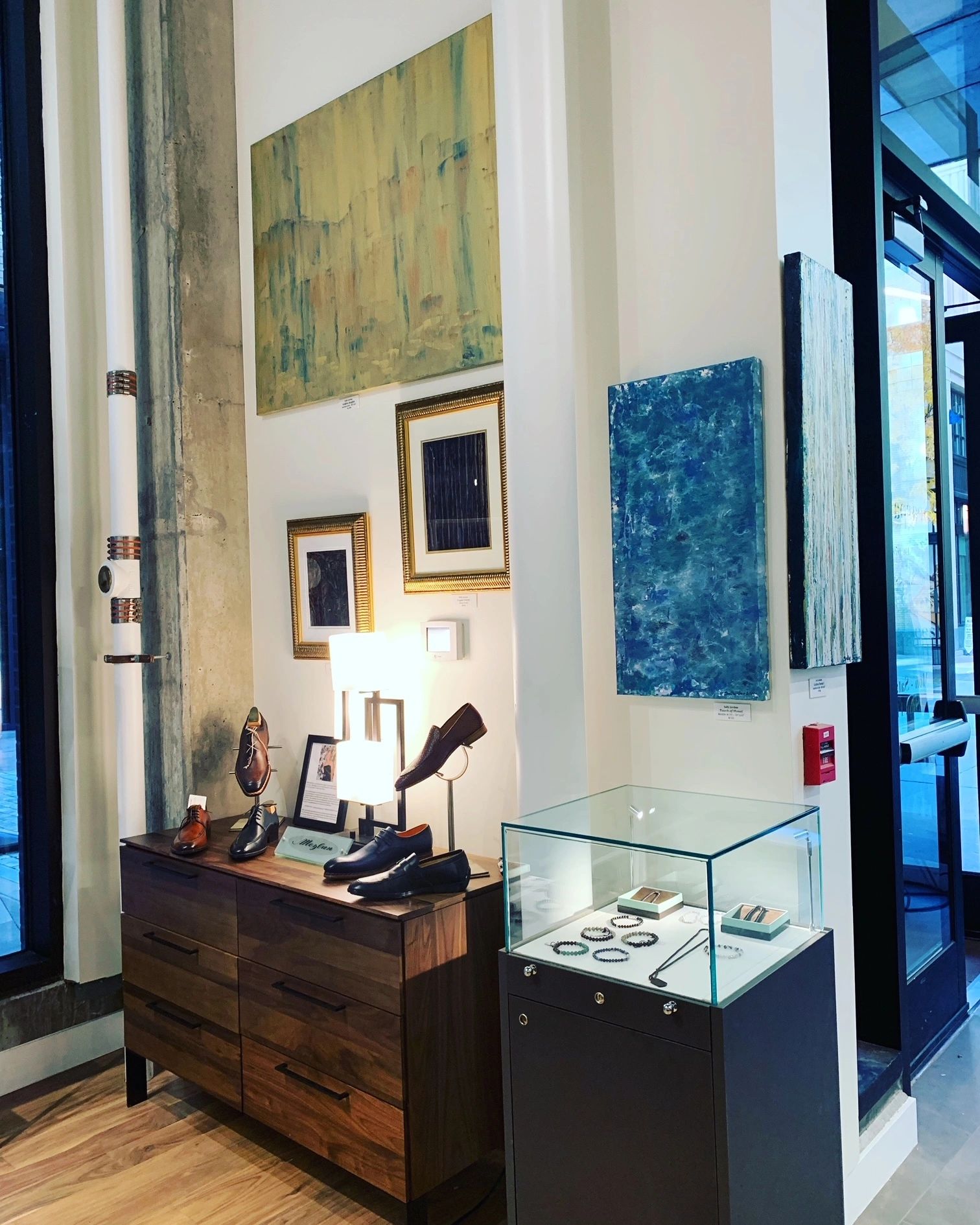 So excited to have 24 of my paintings and metal pieces on display and for sale at Scarpaletto Shoes in Denver at their new location! They are at 1461 16th Street Mall. (On 16th Street, between Market and Blake)